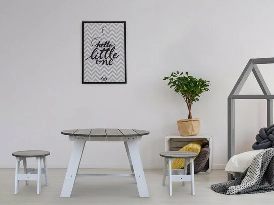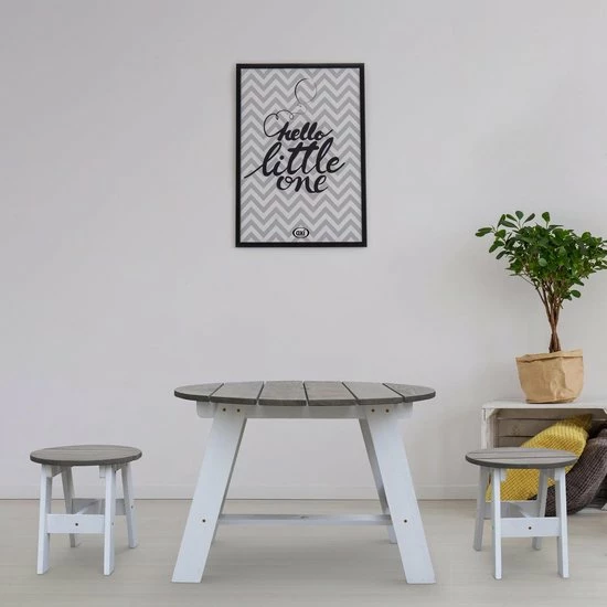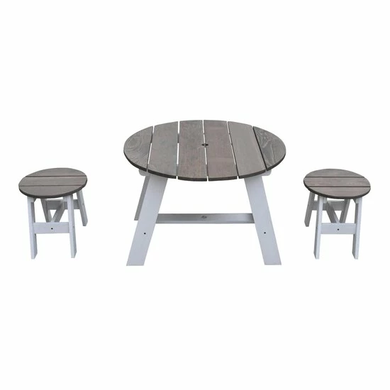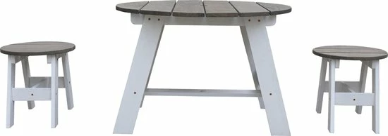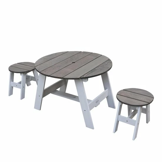 Niet alleen handig, maar ook nog eens zeer smaakvol in je tuin of interieur: de 3-delige Picknick Set Rond Grijs/wit van AXI. Deze ronde houten tafel en krukjes zijn extra stevig en geschikt voor jong en oud. Zowel de tafel als krukjes kunnen een maximaal gewicht van maar liefst 100 kg dragen. De set is uit te breiden met de 2-delige picknickset van AXI (A031.019.12), zodat jij of je kinderen met nog meer vrienden of familie bij elkaar kunt zitten. Vanwege de neutrale grijs/wit tinten past deze set in vrijwel ieder interieur of kan deze gebruikt worden in ??n van de AXI speelhuisjes. Geschikt voor kinderen van 18 maanden en ouder.