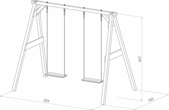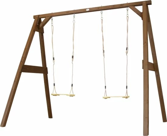 - Twee houten in hoogte verstelbare schommelzitjes.