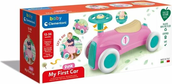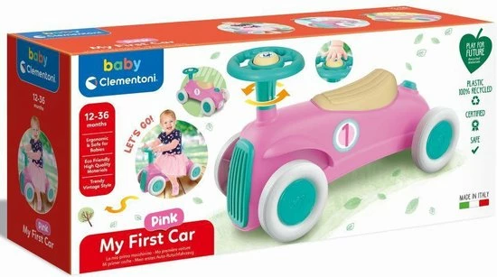 Baby Clementoni – Mijn Eerste Loopauto Roze, Ride On Speelgoedauto, Rijspeelgoed