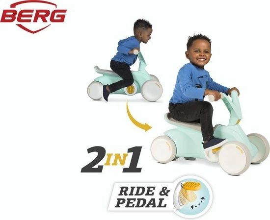 De Berg GO2 is de kleinste skelter voor kinderen van 10-30 maanden. Maar onderschat deze dreumes van een skelter niet. Op deze skelter leert je kleintje namelijk sneller steppen en trappen! Kortom 2 in 1. Eerst kun je de trappers ingeklapt houden zodat je kindje kan steppen. Door de vormgeving kan je kindje de BERG GO?? eenvoudig als loopauto gebruiken zonder dat de pedalen of achterwielen in de weg zitten. Klap de trappers uit wanneer je kind toe is aan de volgende fase. Dan kan jouw dreumes heerlijk leren rondrijden op de BERG GO??. Je hoeft niet bang te zijn dat je kindje omvalt, want de BERG GO?? staat stevig op de grond door de vier wielen. Dit is wel zo veilig!