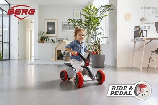 Je kind kan met uitgeklapte pedalen gaan oefenen met de voetjes op deze pedalen om zo te leren skelteren. Aan het begin zal dit even wennen zijn en kan je kind het steppen en trappen afwisselen. Doordat het stuur en de pedalen los van elkaar te bedienen zijn, blijft je kind altijd in controle over de BERG GO??. Met het steppen en skelteren, zijn de eerste stappen in de ontwikkeling van je kind gezet!