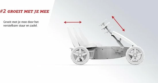 Om jaren speelplezier te hebben met de BERG Rally, is het mogelijk om het stuurtje ??n de stoel te verzetten. Dit zorgt ervoor dat je de ideale positie in kunt nemen op de skelter.