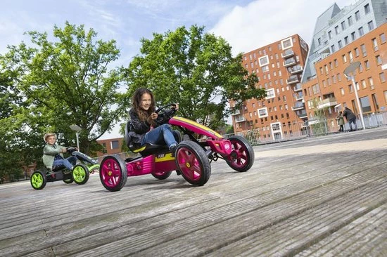 “Met de BERG Rally beleef je de mooiste avonturen. Deze coole sensatie is stabiel en veilig. Zelfs in de scherpste bochten blijf je stevig op de grond. Kortom, ontdek de wereld met deze stoere skelter. Je hoeft je je geen zorgen te maken tijdens je avonturen, want de BERG Rally voldoet aan alle veiligheidseisen. Door het BFR-systeem scheur je eenvoudig rond. De BERG Rally groeit jarenlang met je mee zodat je lang speelplezier hebt.
