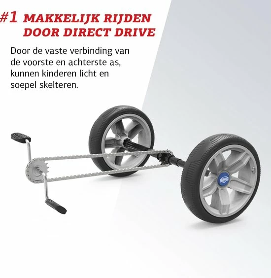 Direct driveDe BERG Reppy is uitgerust met een vaste verbinding tussen de voorste trapas en de achterste as. Dit betekent dat de beweging van de benen direct wordt omgezet in de beweging van de achterwielen. Dit maakt de BERG Reppy super eenvoudig en gemakkelijk te berijden. Zowel voor- als achteruit.