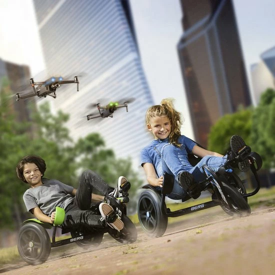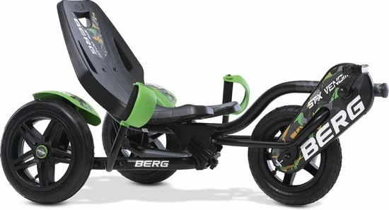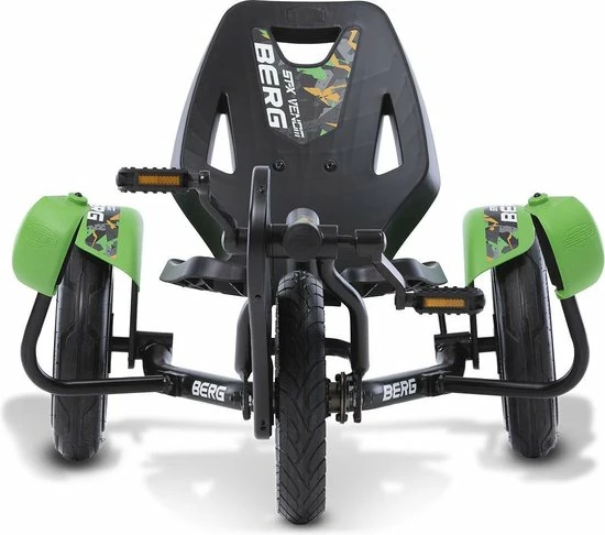 Wil je echt iets anders en stoers qua skelter? Kies dan voor de BERG Street-X Venom voor de vetste moves. Dit groene scheurmonster stuur je door met je lichaam te bewegen zonder balans te verliezen. Dit is ge??nspireerd op het meebewegen in de bochten bij motoren en race-auto???s. Daarnaast heeft de BERG Street-X luchtbanden waardoor je extra comfortabel rijdt. Door het BFR-systeem kun je met de pedalen remmen, maar ook direct na stilstand achteruit rijden. Geef je kind iets speciaals met deze unieke skelter.
