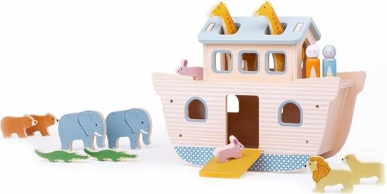 Bigjigs Toys Houten Ark van Noach met houten dieren.