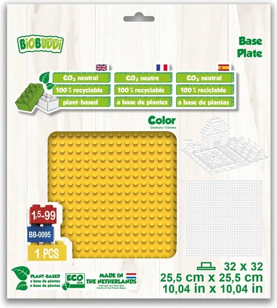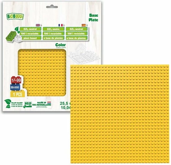 De eerste speelgoedplaat gemaakt van plantaardig materiaal ter wereld. Het speelgoedbord heeft exact dezelfde maat en functionaliteit als het speelgoedbord van andere bekende merken. Het grote verschil zit hem in het materiaal, bestaande merken maken hun speelgoedblokken en speelgoedplaten nog steeds grotendeels van ABS-plastic. ABS Plastic is afkomstig van aardolie en is erg vervuilend tijdens de productie. Ook is ABS-plastic niet gemakkelijk te recyclen en wordt het afgedankte ABS verbrand in de verbrandingsoven. Dit resulteert al jaren in een ongekende CO2-uitstoot. Het BiOBUDDi speelgoedbord is niet gemaakt van een op olie gebaseerde grondstof, maar van ons gepatenteerde BiOBUDDi plantaardig materiaal.