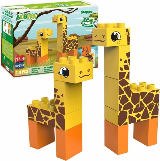 Wil je meer weten over de prachtige steppe en de wezens die daar leven? Deze speciale set is perfect voor dierenliefhebbers en brengt een wereld van dieren in het wild binnen handbereik van je kleintje. Tijd om de steppe te verkennen en de fascinerende wonderen van de natuur te ontdekken. De Steppe speelset biedt bouwstenen met een warm geel en oranje thema. Bouw de giraffamilie of de koppige eland, de keuze is aan jou. Maar daar blijft het niet bij. Laat het aan je verbeelding over om creaties buiten de doos te bouwen.