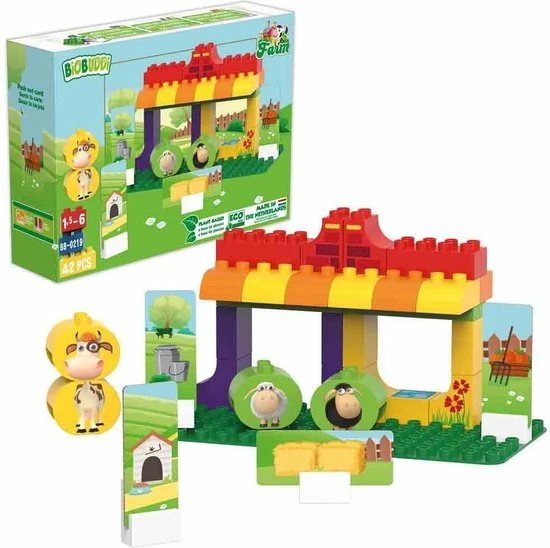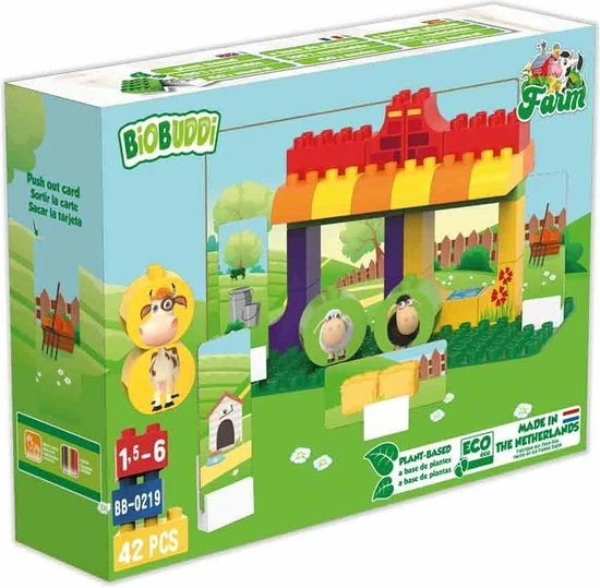 Ontdek het boerenleven met de nieuwe Animal Farm-speelset van BiOBUDDi. Een superleuke speelset bio speelset voor kinderen van 1,5 tot 6 jaar jong. Laat je zoon of dochter spelen en leren met milieuvriendelijke bouwstenen. Bouw alles samen en cre?er samen je eigen dierrijke boerderij. Bouw je eigen dierenboerderij met de bouwstenen en bodemplaat. Er zijn ook 6 expresskaarten en 1 achtergrondkaart die je gemakkelijk uit de verpakking kunt printen en in de 6 meegeleverde slotblokken kunt plaatsen voor nog meer speelplezier. Dus ga aan de slag met je zoon of dochter en maak je eigen dierenboerderij.