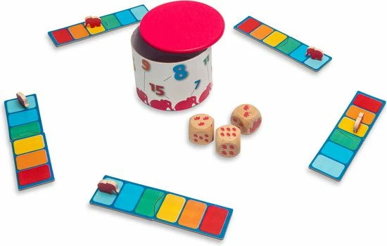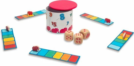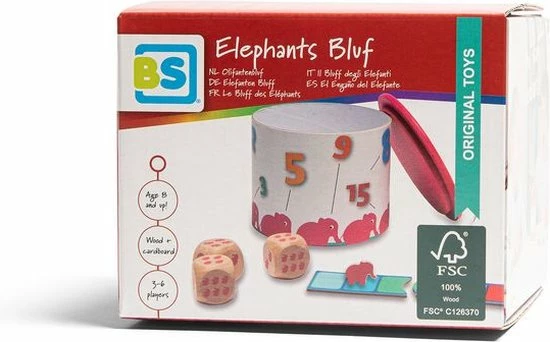 Gooi de dobbelstenen onder de beker en vertel aan de volgende speler hoeveel roze olifanten er liggen. Dit aantal moet altijd ??n olifant meer zijn dan de vorige speler. Zorg dus dat je goed gooit ?f dat je zo goed bluft dat de volgende speler worp ongezien accepteerd. Hoe goed kun jij bluffen en anderen in verwarring brengen?
