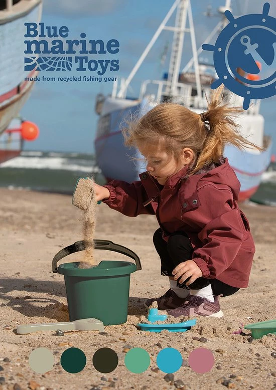 De emmerset van Blue Marine Toys is, net als al het andere speelgoed uit de serie, gemaakt van gerecycled plastic dat afkomstig is van vistuig uit de zee, zoals netten, sleepnetten en touwen. In de fabriek in Hobro worden deze restmaterialen omgetoverd tot speelgoed, omdat het gebruik van het gerecyclede materiaal een preventieve actie is tegen visserij- en marinetuig dat in de oceanen terechtkomt. Het Blue Marine-gamma moedigt aan tot spelen met zand en water in de vrije natuur – in de natuur zelf die we moeten verzorgen en beschermen. Met Blue Marine Toys zet Dantoy een duurzame, preventieve stap om de natuur te beschermen.