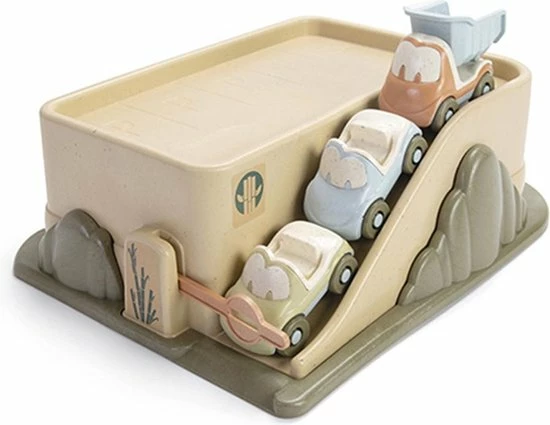 - Deze garageset van Dantoy is speciaal gemaakt voor de allerkleinsten en kan je makkelijk overal meenemen. Naast de garage, in zachte natuurlijke kleuren, zijn er ook nog de 3 leuke kleine auto’s.