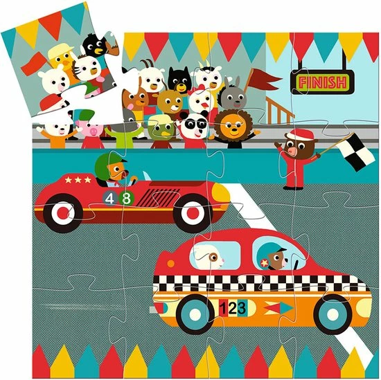 Djeco kinderpuzzel in racewagen doos – 16 stukjes