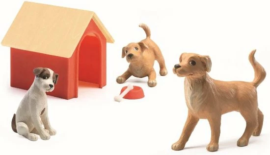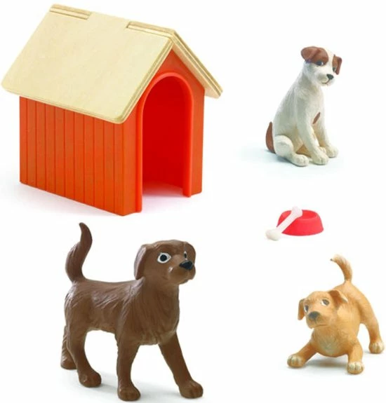 Djeco Poppenhuis Honden | Met Hok | 6 Stuks