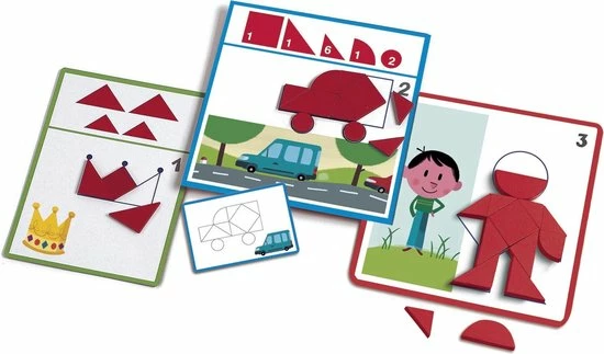 Ontdek de verschillende vormen met Djeco, begin met de makkelijkste groene speelkaarten, heb je die onder de knie dan ga je naar de blauwe om te eindigen met de moeilijkste rode kaarten. Op de kleine kwartetkaarten kun je zien of jouw oplossing de juiste is. Een prachtige speeldoos met een hoge educatieve waarde en aansprekende afbeeldingen/speelkaarten.