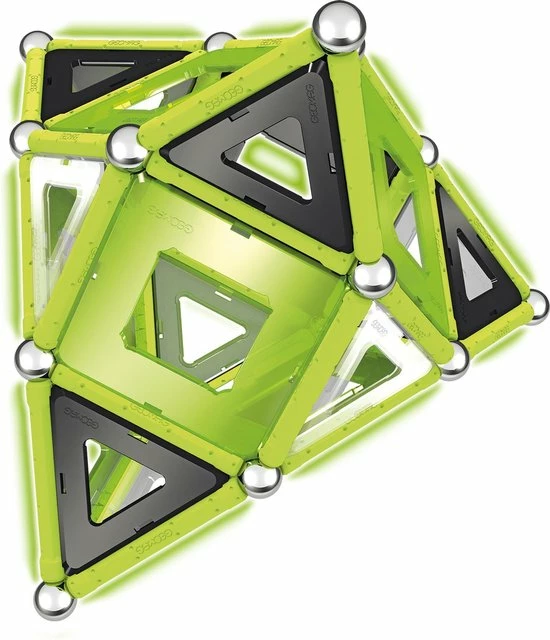 Geomag is een ingenieus en toch eenvoudig constructiesysteem met magnetische staven en stalen bollen, waarmee je oneindig veel figuren en driedimensionale constructies maakt. Dit super leuke speelgoed stimuleert het ruimtelijke inzicht, het ontwikkelt de bouwknobbel en zet aan tot creativiteit en logisch denken. De maximale kracht van de magneetjes zorgt ervoor dat de meest ingewikkelde constructies mogelijk zijn en met behulp van de panelen kan er extra stabiliteit worden aangebracht. Daarnaast heeft deze Color Glow serie super coole glow in the dark onderdelen, waardoor jouw prachtige creatie zelfs in het donker zichtbaar is!