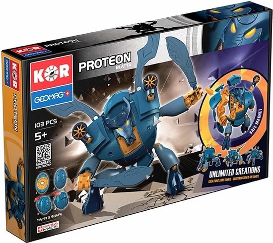 Kinderen zullen zich urenlang vermaken met de Geomag KOR Proteon. Laat jouw fantasie de vrije loop, draai aan de Proteon en maak oneindig veel verschillende figuren. De mogelijkheden met de KOR Proteon zijn eindeloos!