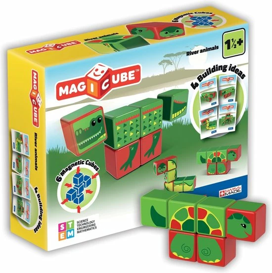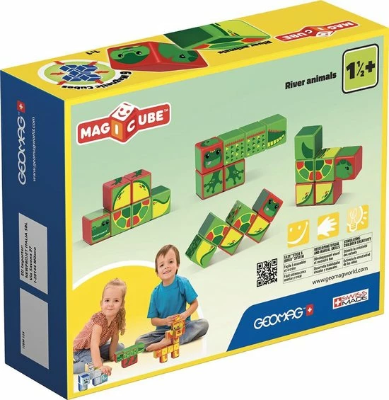 De Geomag MagiCube is speciaal ontwikkeld voor de allerkleinsten. Met deze set kunnen kinderen de klassieke kubus ontdekken. Deze set met dierenthema bestaat uit zes magnetische blokjes waarmee je vier verschillende rivierdieren kunt bouwen.