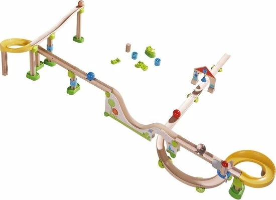 Met deze supertoffe uitbreidingsset van Haba kun jij jouw knikkerbaan nog groter maken!