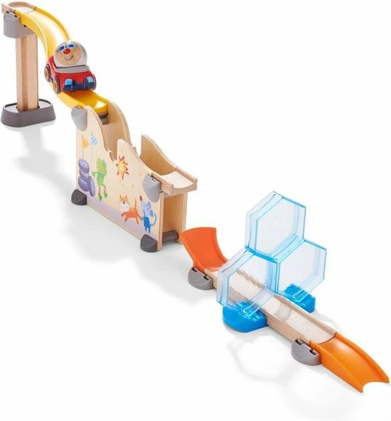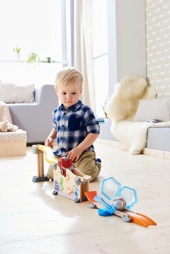 Bouw je eigen speelwereld met de Speelbaan Crashtest van het Duitse merk Haba.