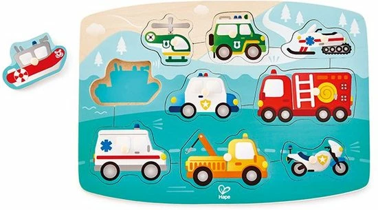 Houd je van voertuigen? Leer meer over de verschillende voertuigen die je tegen kunt komen op de plek van een noodgeval met de kleurrijke en boeiende puzzel.SpeeltipsLos de puzzel op door de vormen of afbeeldingen te paren met de correcte gaten en moedig uw kinderen aan om de namen van de voertuigen te zeggen terwijl ze aan het spelen zijn.Kenmerken