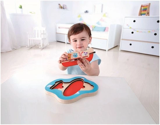 Hape Airplane vormen-puzzel. Een groep dierenvrienden zitten in het vliegtuig voor een leuk reisje. Maar waar gaan ze naartoe? Maak en speel met de 3D-vliegtuigpuzzel om het te ontdekken!SpeeltipsLos de puzzel horizontaal op alvorens een 3D-vliegtuig te bouwen waarmee afzonderlijk kan worden gespeeld.Kenmerken