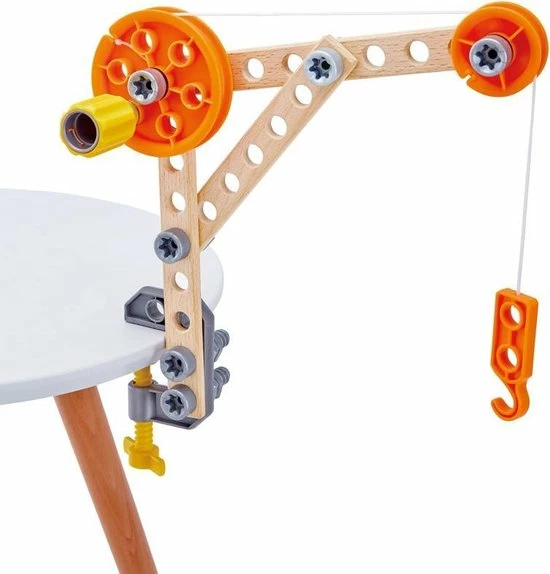 Vermaak jezelf met deze set, met drie uitdagende experimenten. Wanneer je het experiment voltooit, krijg je een mechanische grijparm, een kraan en een klimmende kikker.