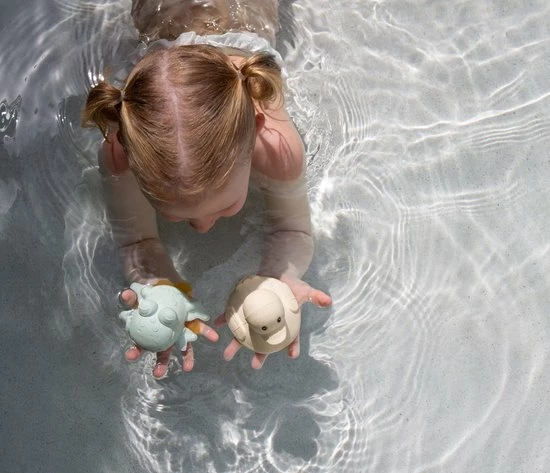 Ons upcycled badspeelgoed is gemaakt van hoogwaardig rest- of uitgesneden materiaal van onze natuurlijke rubberproductie. In plaats van het materiaal weg te gooien, veranderen we afval in een schat, geven we het een nieuw leven en minimaliseren we verspilling en maken we op deze manier echt positieve vingerafdrukken op de planeet.