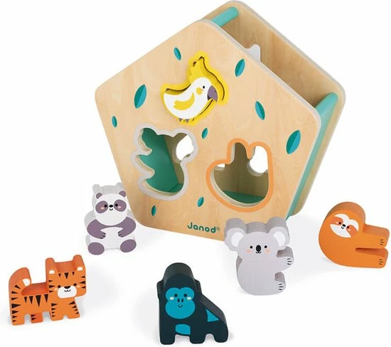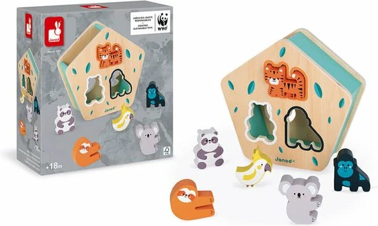 Prachtige tweezijdige vormendoos met 6 personages in de vorm van een dier. Elk gat is omringd door de kleur van het dier om het kind te helpen bij het vinden van de juiste plaats. Ideaal voor het leren van vormen en kleuren. Speelgoed van FSC-gecertificeerd massief hout en waterverf. Vanaf 18 maanden. Speelgoed ontwikkeld in samenwerking met WWF?. Janod ondersteunt de inspanningen van WWF?? om het milieu en de biodiversiteit te beschermen met een nieuwe reeks speelgoed gemaakt van duurzamere materialen. We hopen dat dit assortiment de volgende generatie zal inspireren en hen zal aanmoedigen om in de toekomst op te komen voor dieren in het wild en de natuur.