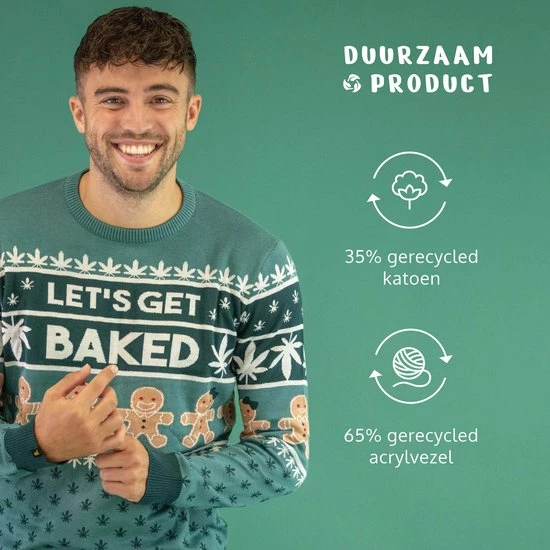 JAP Christmas JAP Foute Kersttrui – Let’s Get Baked – Kerstcadeau Volwassenen – Dames En Heren – Kerst – S – Groen