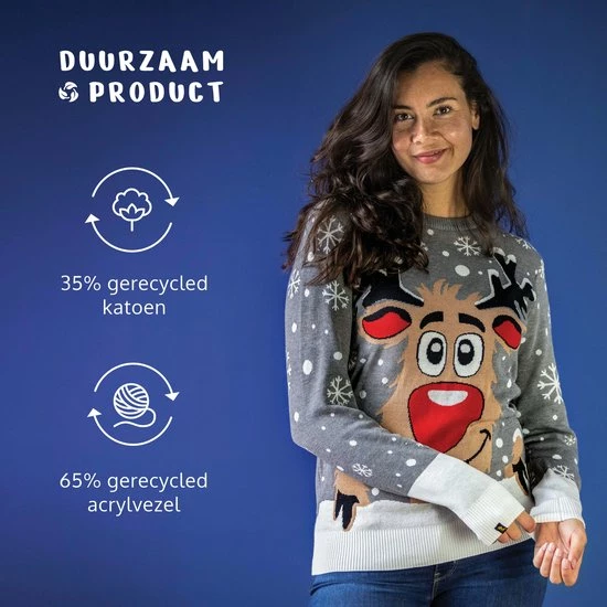 JAP Christmas JAP Foute Kersttrui – Rudolf Het Rendier – Kerstcadeau Volwassenen – Dames En Heren – Kerst – L – Grijs