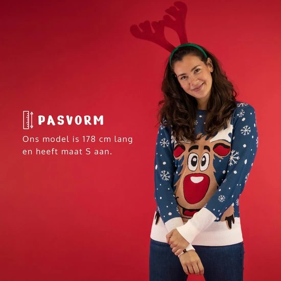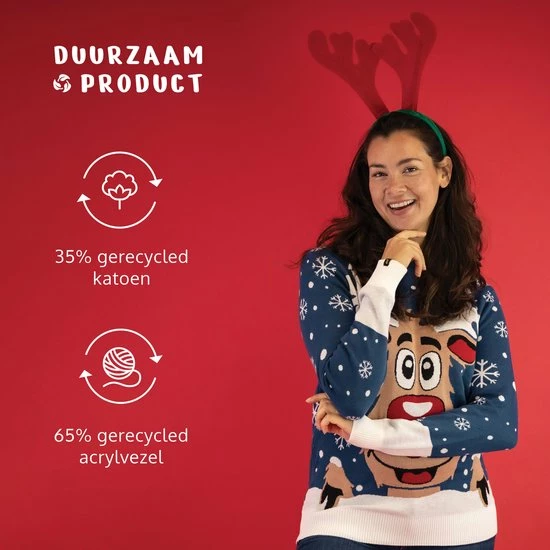 JAP Christmas JAP Foute Kersttrui – Rudolf Het Rendier – Kerstcadeau Volwassenen – Dames En Heren – Kerst – M – Donker Blauw