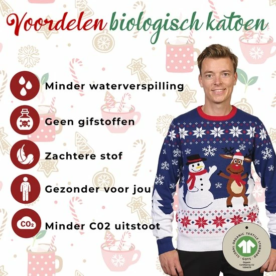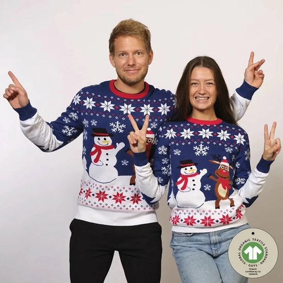 Jule Sweaters Foute Kersttrui Dames & Heren – Christmas Sweater “Beste Vrienden” – 100% Biologisch Katoen – Kerst Trui Mannen & Vrouwen Maat XL