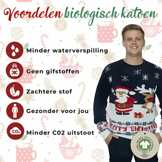 Jule Sweaters denk verder dan Kerstmis van dit jaar die jij wilt vieren met een geweldige Kersttrui… Jule Sweaters denkt namelijk ook aan de Kerstmissen die nog gaan volgen ?n aan die van de volgende generatie. En daarom heeft Jule Sweaters een groot deel van haar collectie gemaakt in 100% Biologisch Katoen! Waarom Biologisch Katoen? Biologisch katoen is geteeld zonder het gebruik van landbouwgif als pesticiden.