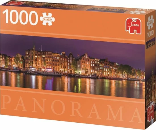 Bewonder de skyline van Amsterdam in panorama met deze Premium Quality puzzel van 1000 stukjes.