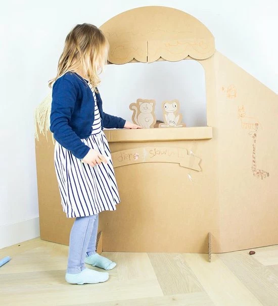 Met deze poppenkast van karton kunnen jouw kids hun fantasie de vrije loop laten gaan en de leukste shows opvoeren.