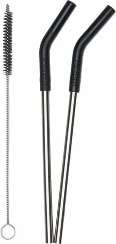 Twee rietjes van roestvrijstaal en siliconen. Ideale vervangers voor wegwerprietjes. Met borsteltje om eenvoudig schoon te maken