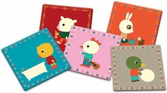 Memory géant vrienden van het Franse merk Djeco is een super leuk memory spel en tevens het ideale gezelschapsspel om met het hele gezin te spelen. Dit memory spel heeft 32 extra grote, kleurijk geïllustreerde memorykaarten van 11 x 11 cm. Een potje memory spelen? Simpel, draai alle kaarten om. De eerste speler draait twee kaarten om en legt ze vervolgens weer andersom. De volgende speler draait op zijn beurt ook twee kaarten om. Als het hem of haar lukt om twee dezelfde plaatjes te vinden, een paar van dierenvrienden, wint deze speler het paar en mag hij verder gaan. De winnaar van deze leuke memory is diegene die het meest aantal paren dierenvrienden heeft. Memory is een plezierig spel waarbij beeld en geheugen gecombineerd worden.