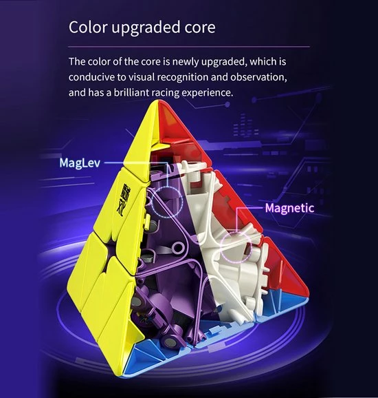 MoYu WeiLong Pyraminx Magnetic is de eerste pyraminx die wordt aangeboden in een ?MagLev?-versie en heeft een nieuwe magnetische lay-out.
