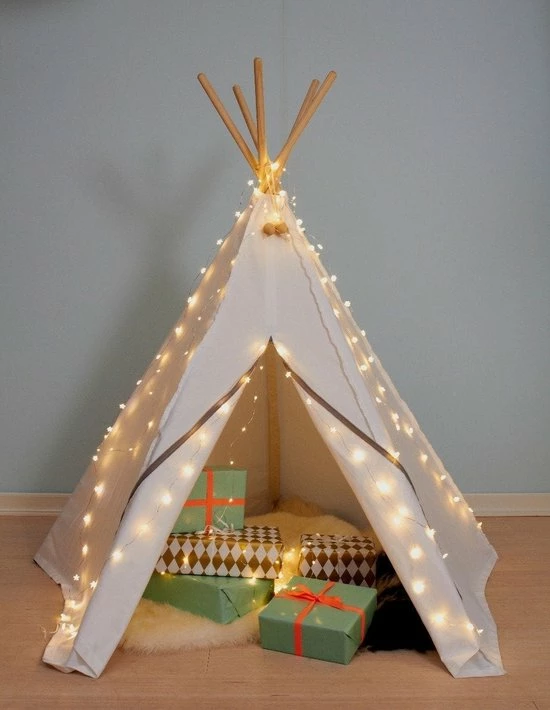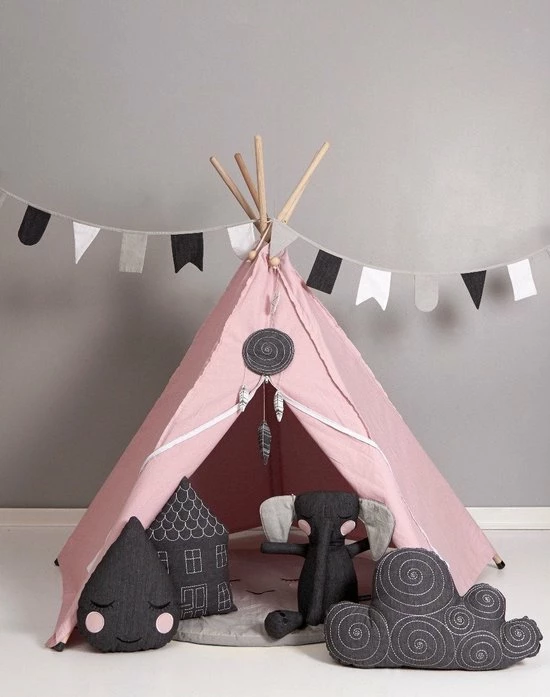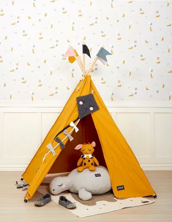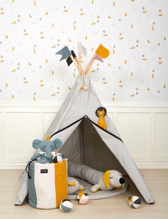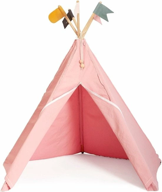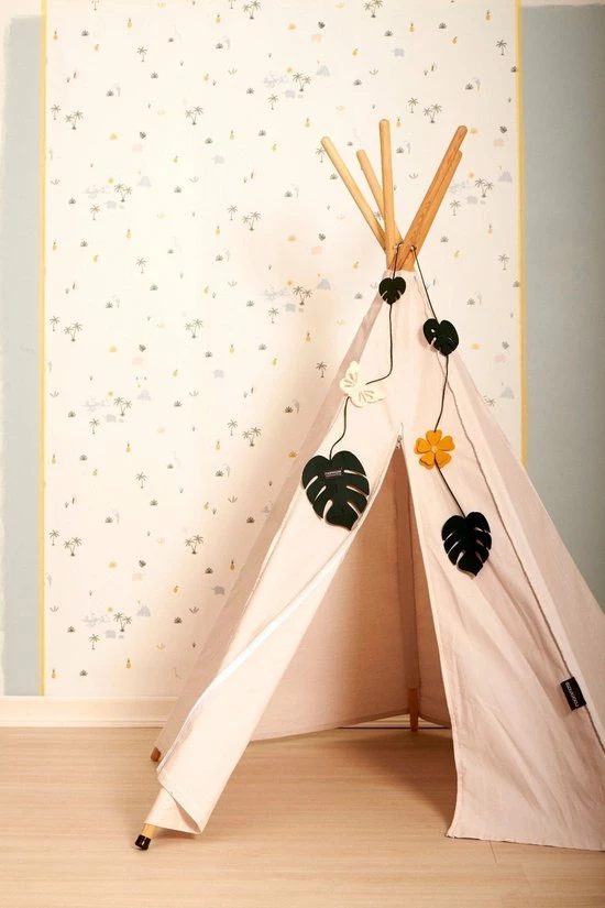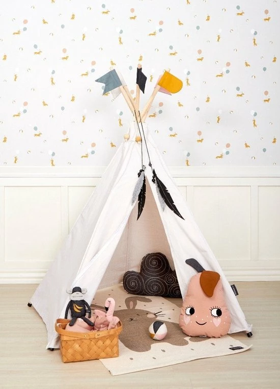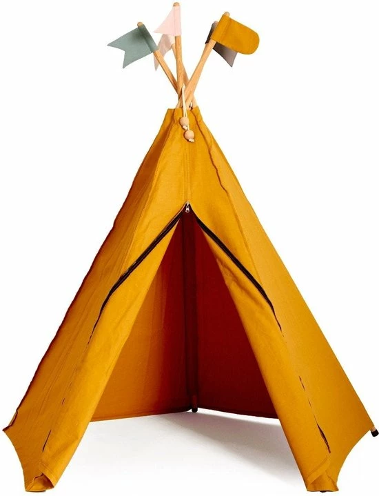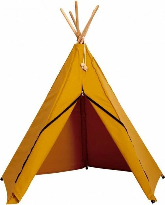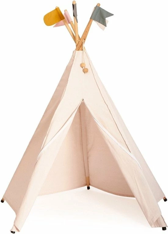 Zodra de Hippie Tipi speeltent staat, kan het avontuur beginnen! Verzamel al die knuffels, spelletjes, vriendjes en vriendinnetjes maar. Gezellige theekransjes, indianenavonturen of kamperen, deze hut is jouw domein!De speeltent is eenvoudig op te zetten met de meegeleverde houten stokken. Aan de voorkant zit een rits waarmee je de tent af kunt sluiten voor wat extra privacy. Het doek is gemaakt van zeer stevig organisch katoen waardoor die ook geschikt is voor buiten.Kenmerken