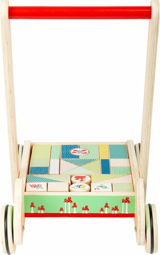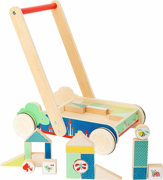 Laat jouw kindje de eerste stapjes zetten met deze houten loopwagen van Small Foot. Als kinderen leren lopen, hebben ze graag wat steun. Het vrolijke design en de royale opbergruimte met blokken helpen de beginnende lopers bij hun eerste stapjes. De houten bouwstenen zorgen voor urenlang speelplezier na de korte wandeling. Niets staat die eerste stappen meer in de weg!