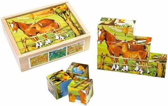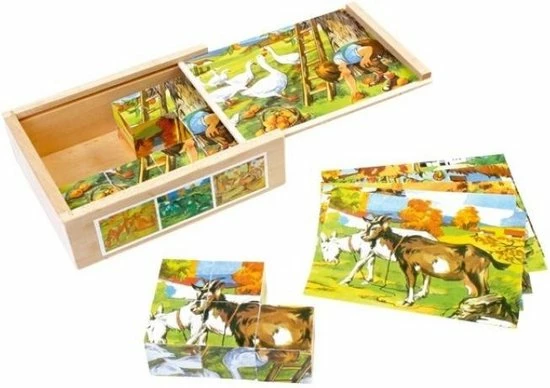 12 houten blokken laten 6 taferelen van het vredige leven op de boerderij zien! Een plezier voor alle jonge puzzelliefhebbers.