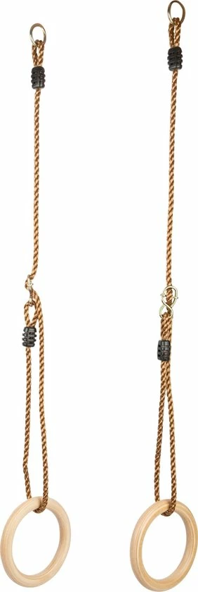 Deze turnringen van Small Foot fascineren jong en oud, omdat het verlangen naar swingend, zwaaiend en fantasierijk spel op allerlei manieren kan worden gecombineerd. En al die tijd trainen de jonge aspirant-acrobaten hun gevoel van impuls en ritme, evenals hun kracht, balans en uithoudingsvermogen. Dankzij het grijpbare hout kunnen zelfs kinderen met kleinere handen enorm swingend plezier beleven aan deze turnringen. Zelfs de beste routines kunnen thuis in de tuin worden getraind voor de volgende sportles!