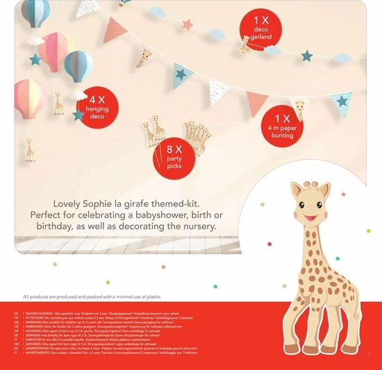Maak van elke gelegenheid een feestje, en met deze leuke Sophie de giraf decoratie set lukt dat zeker!