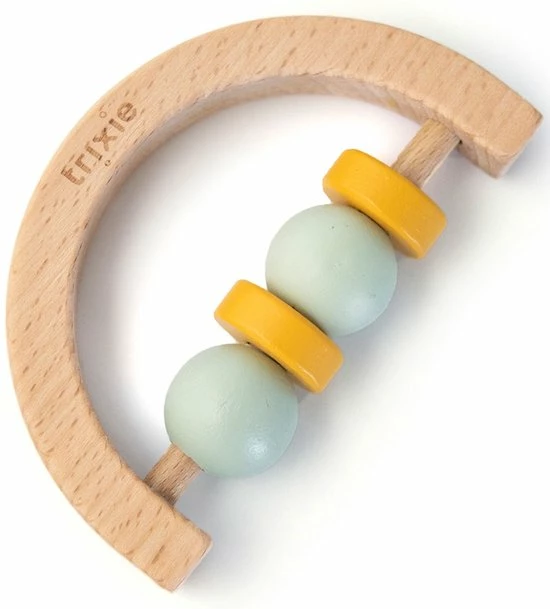 Kleine vingers kunnen deze rammelaar perfect vastpakken om hem heen en weer te schudden en het geluid te ontdekken dat hij kan maken! De kralen zijn leuke elementen om mee te spelen. De halve cirkel rammelaar is gemaakt van hoogwaardig 100% FSC gecertificeerd beukenhout. De verf op dit product is op waterbasis.